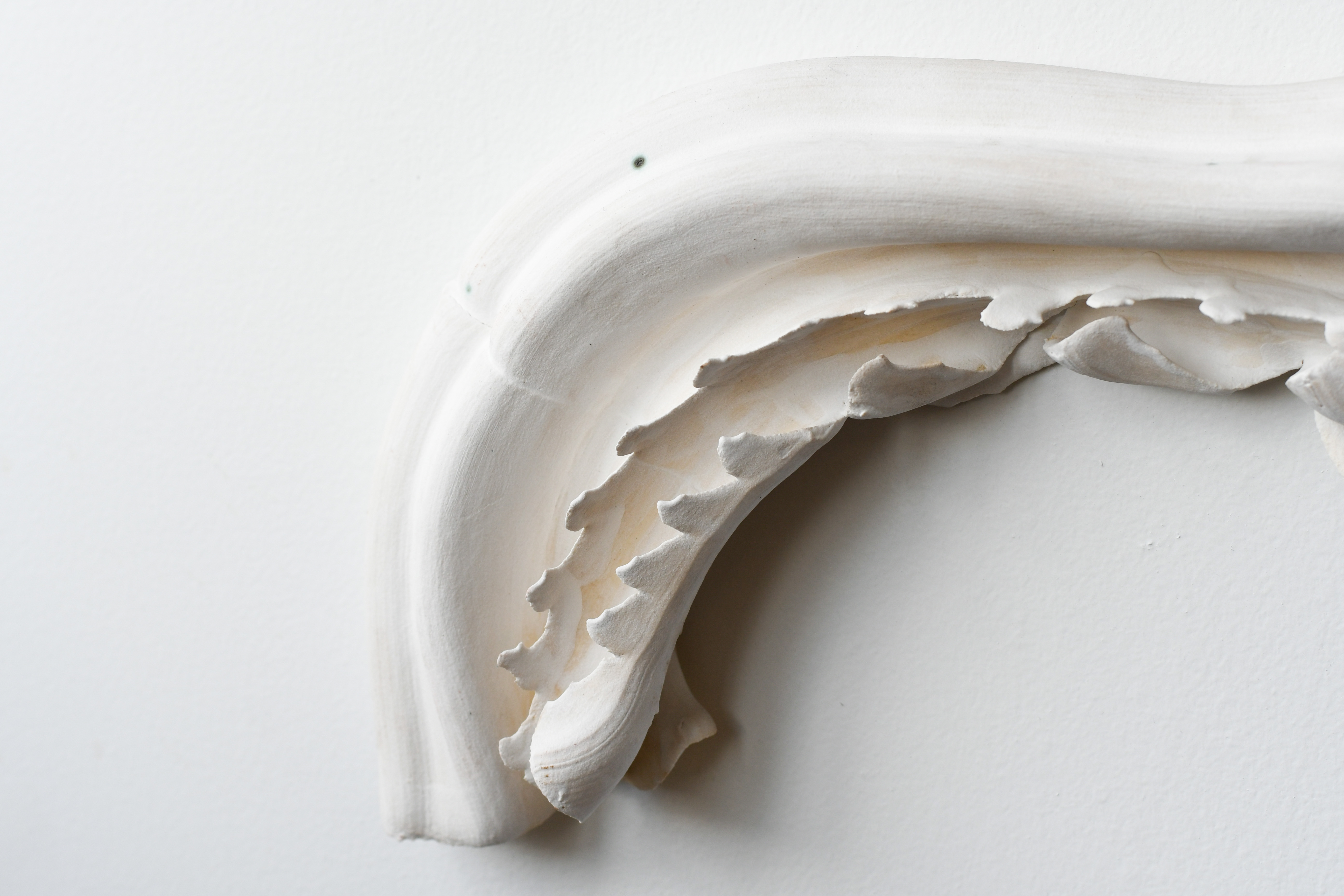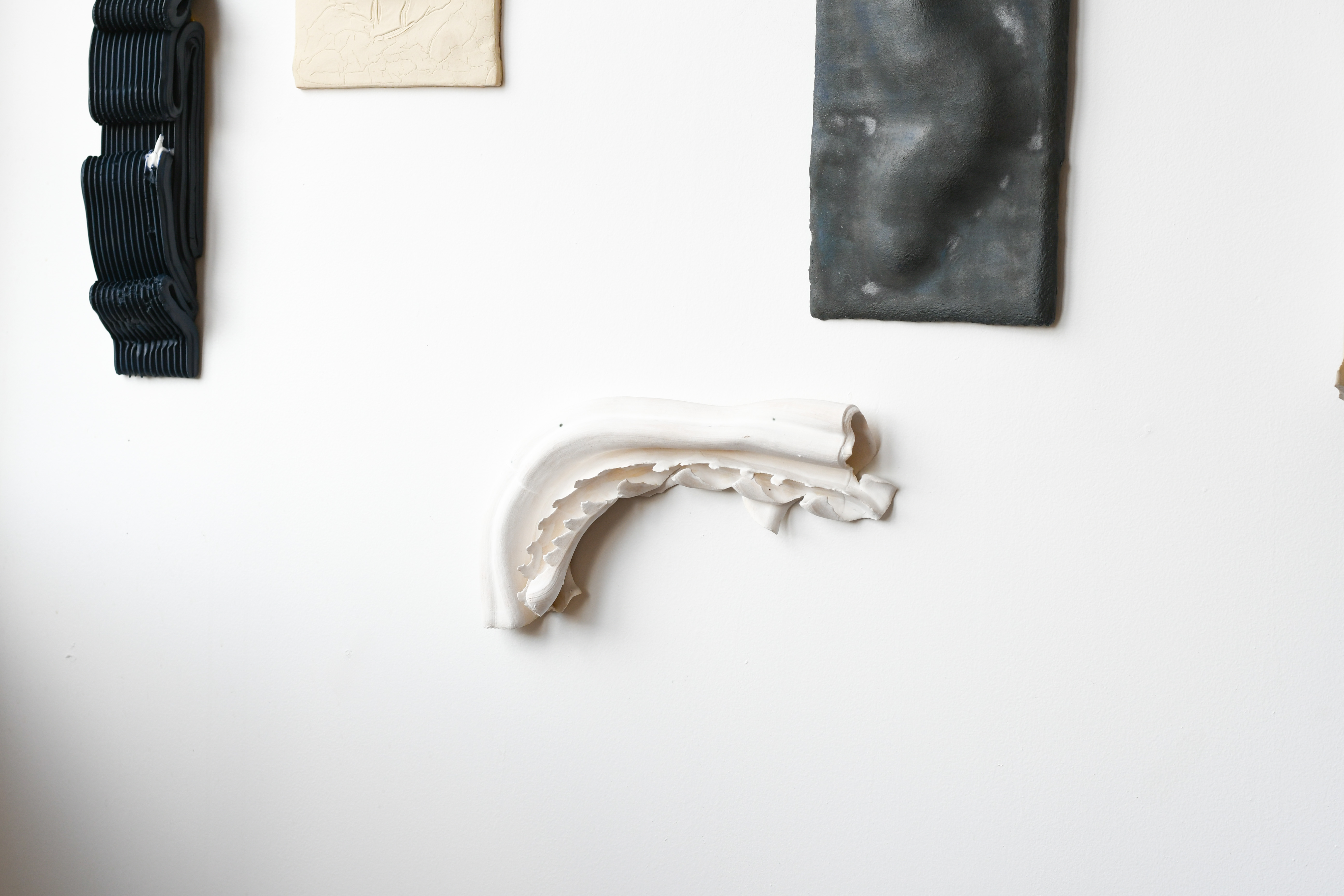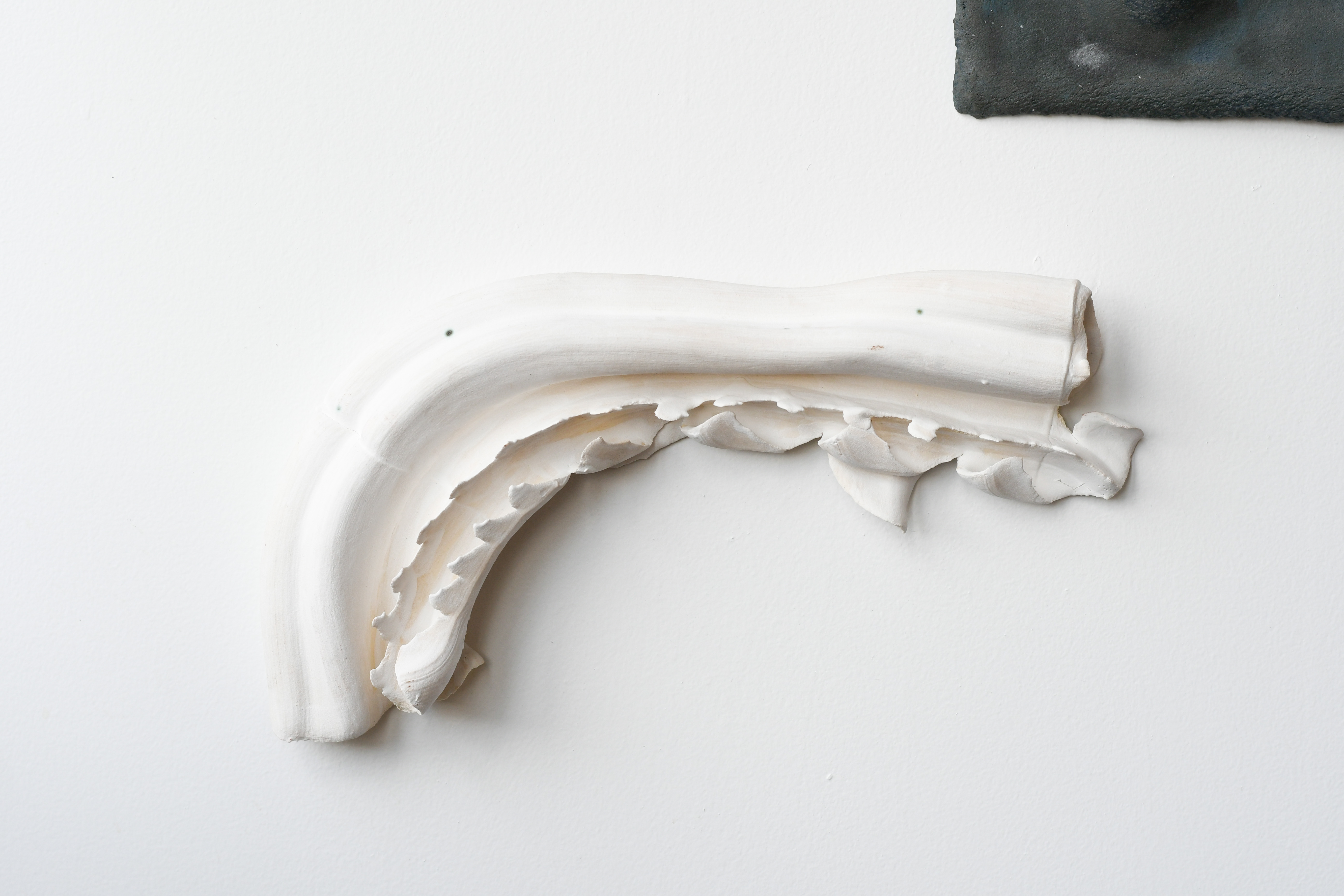 13.5” x 7.5” x 2”. Folded gesture in stoneware.