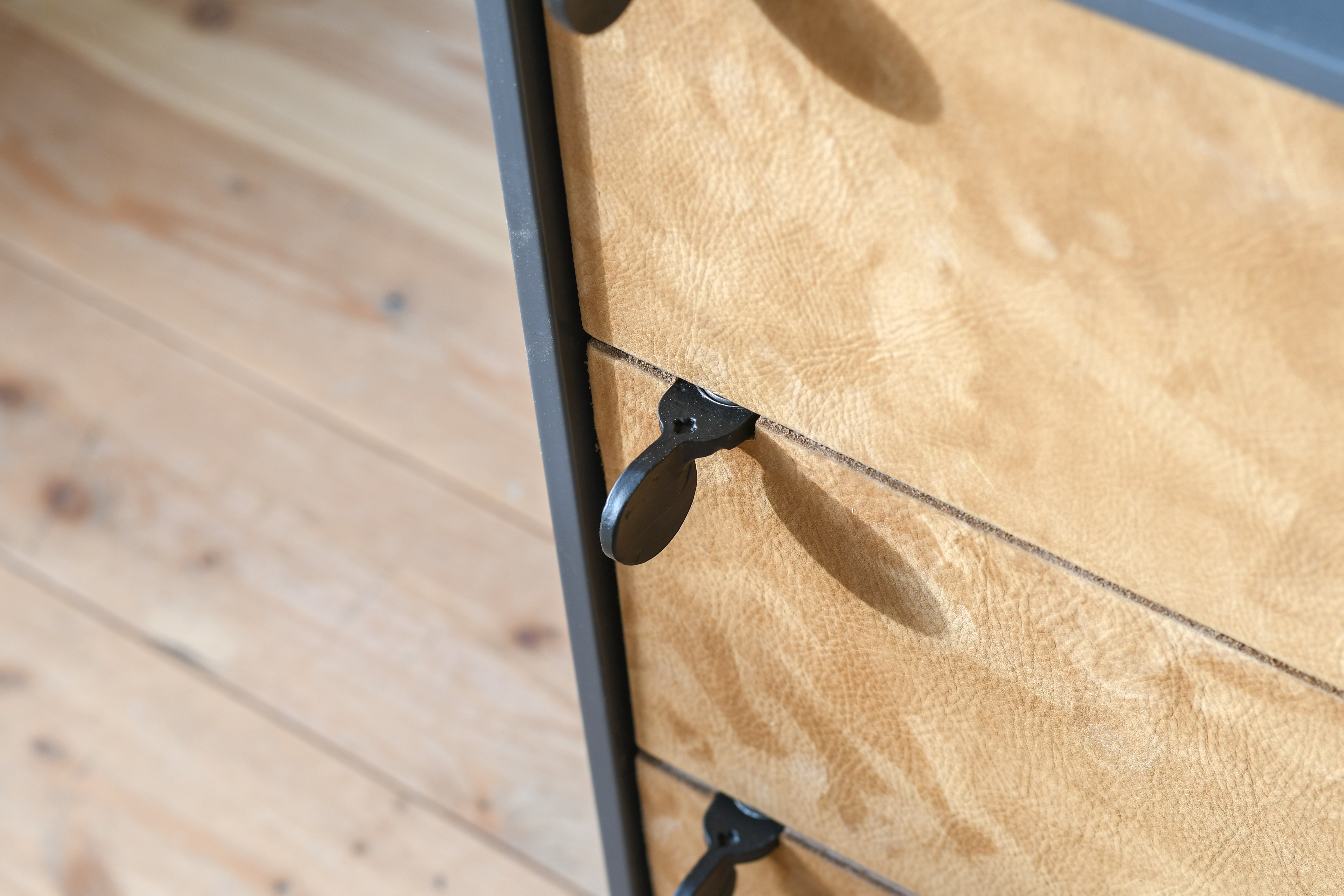 Available in Blackened or Raw pewter, with hardware included.